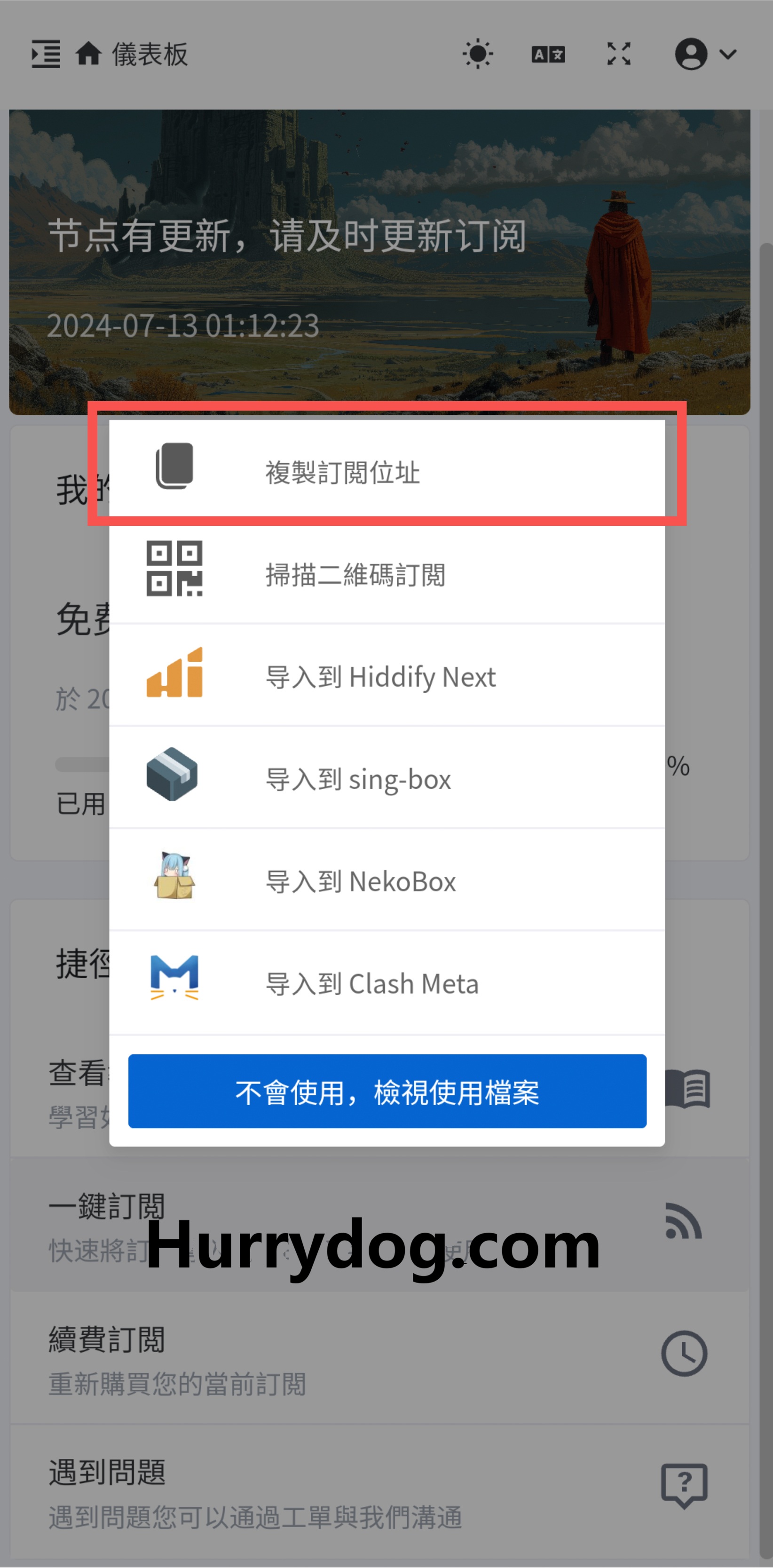 登录机场,点击「一键订阅」,并复制订阅地址。