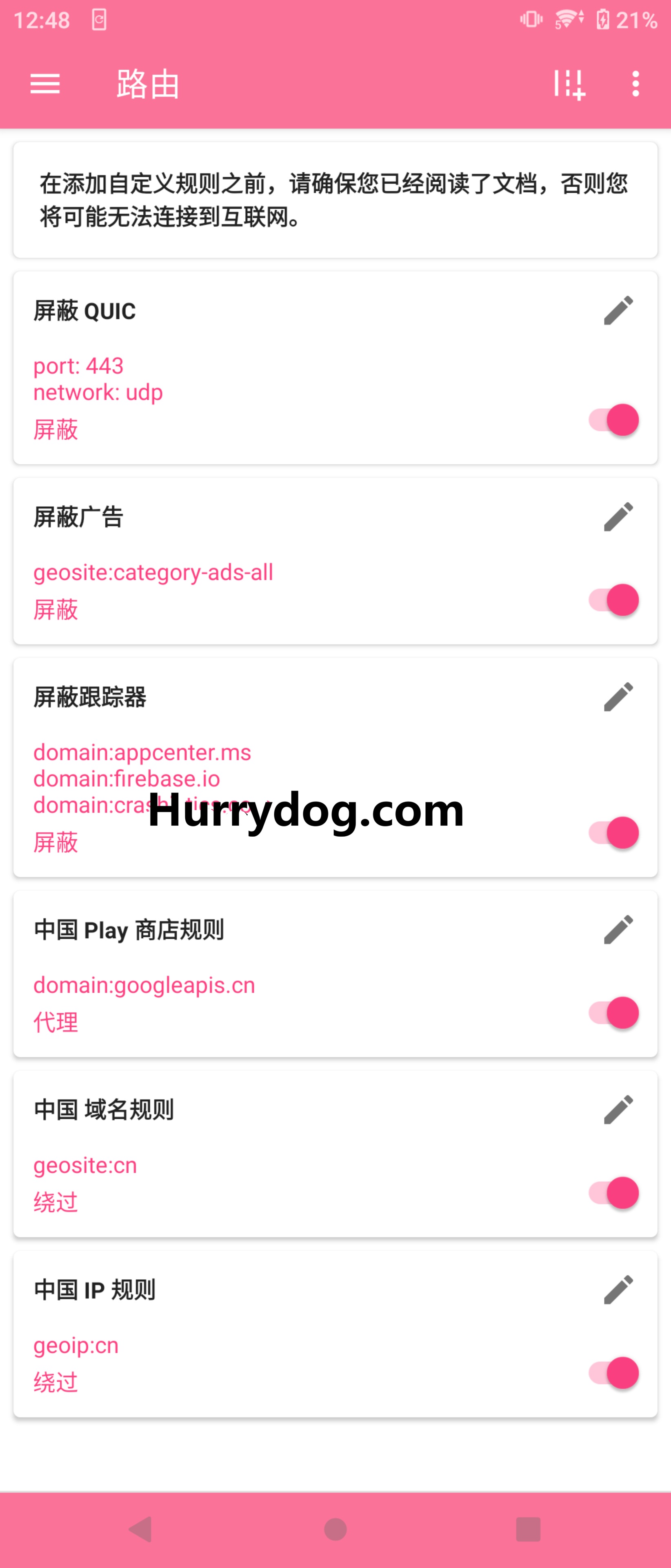 1. 屏蔽QUIC:提高网络传输稳定性,尤其在某些地区运营商限制UDP流量时。
