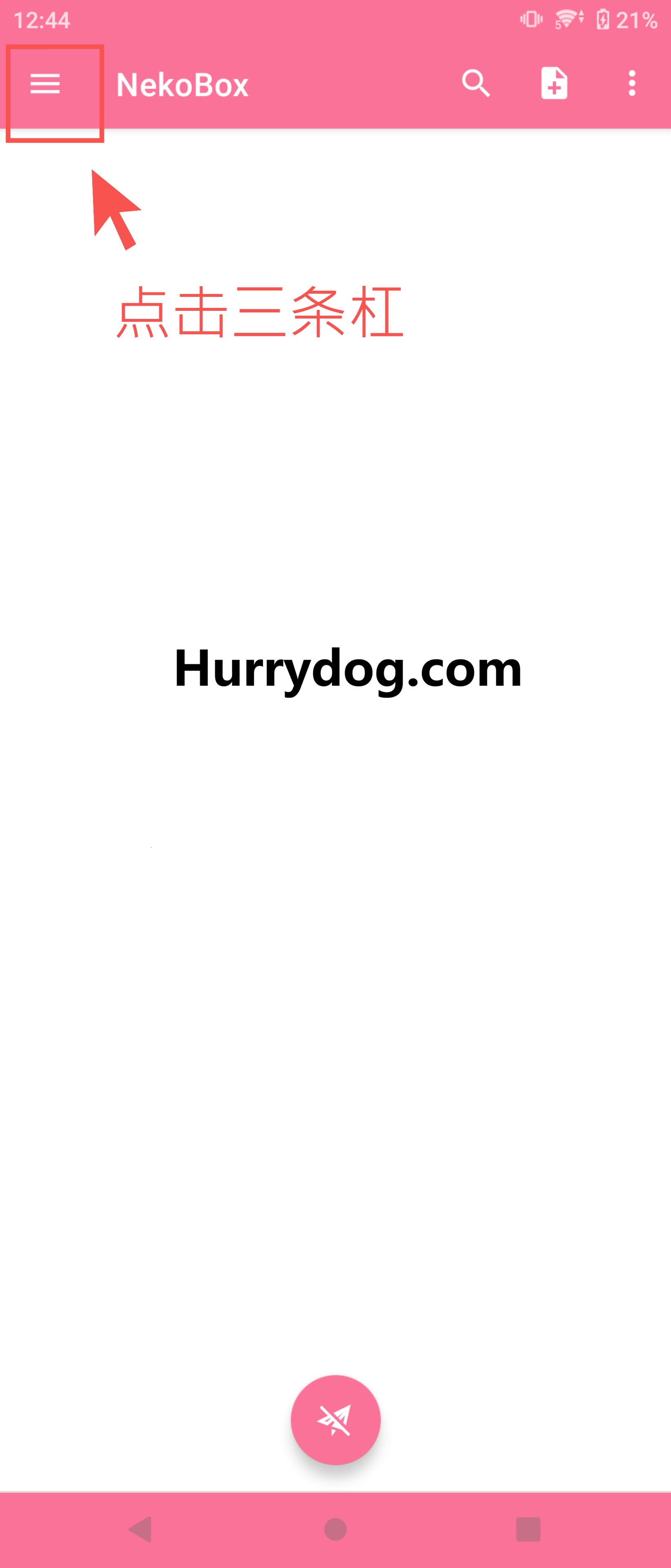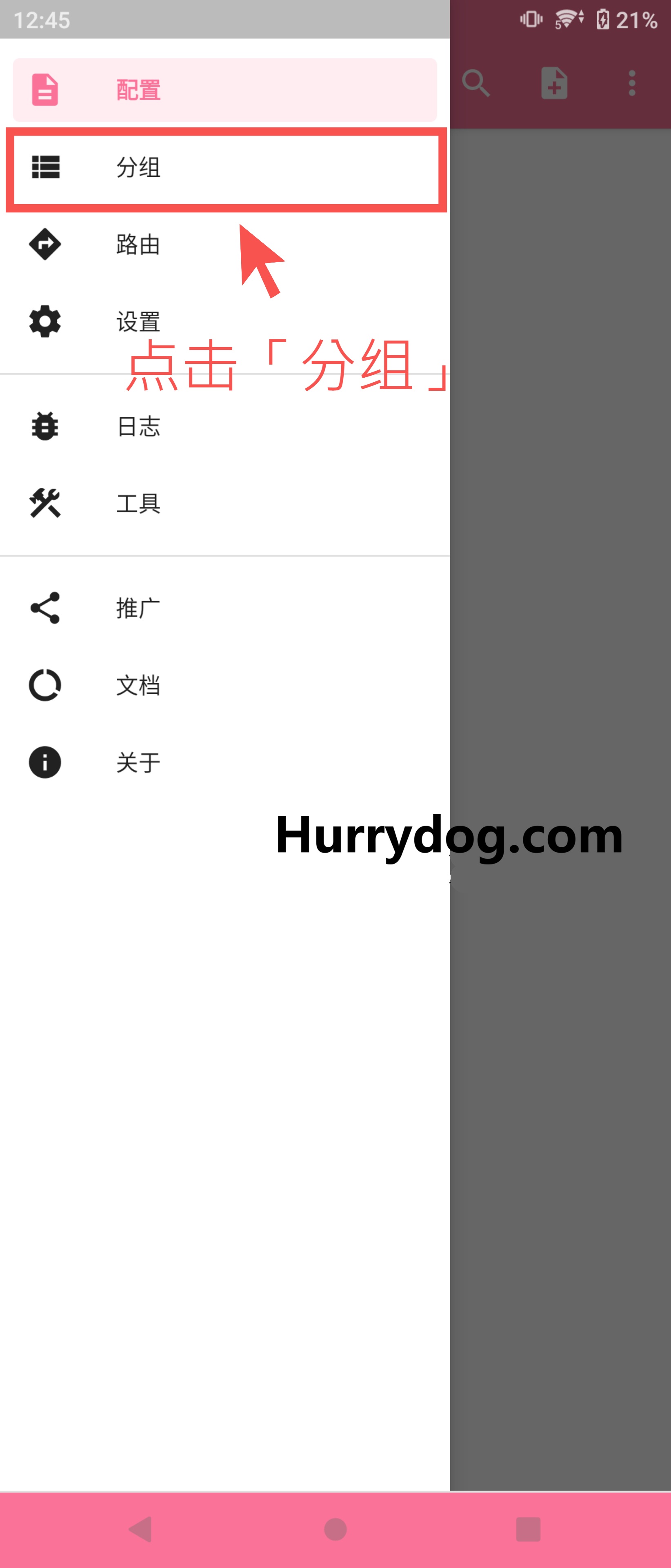 打开NekoBox for Android客户端,点击左上角的「配置」选项,选择「分组」。