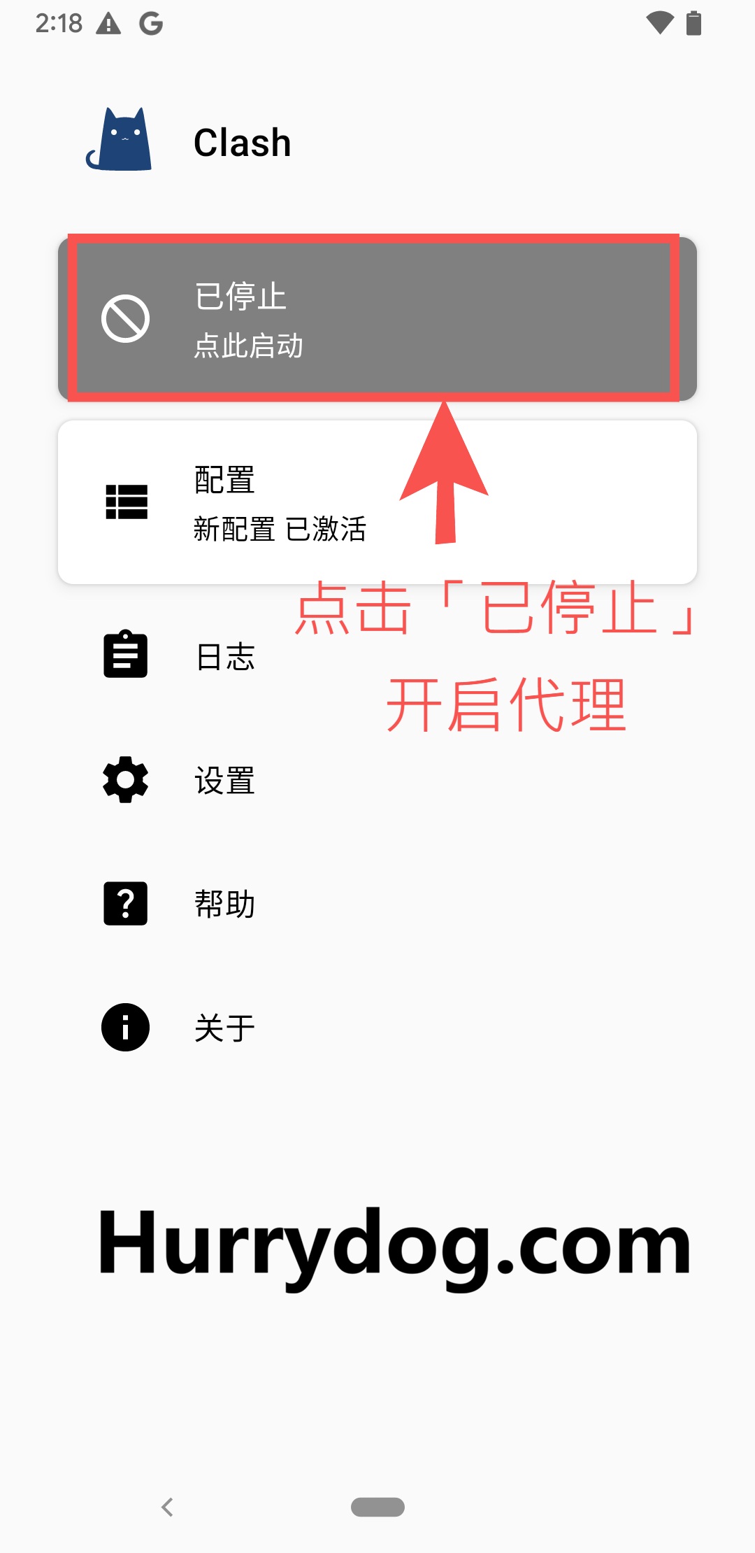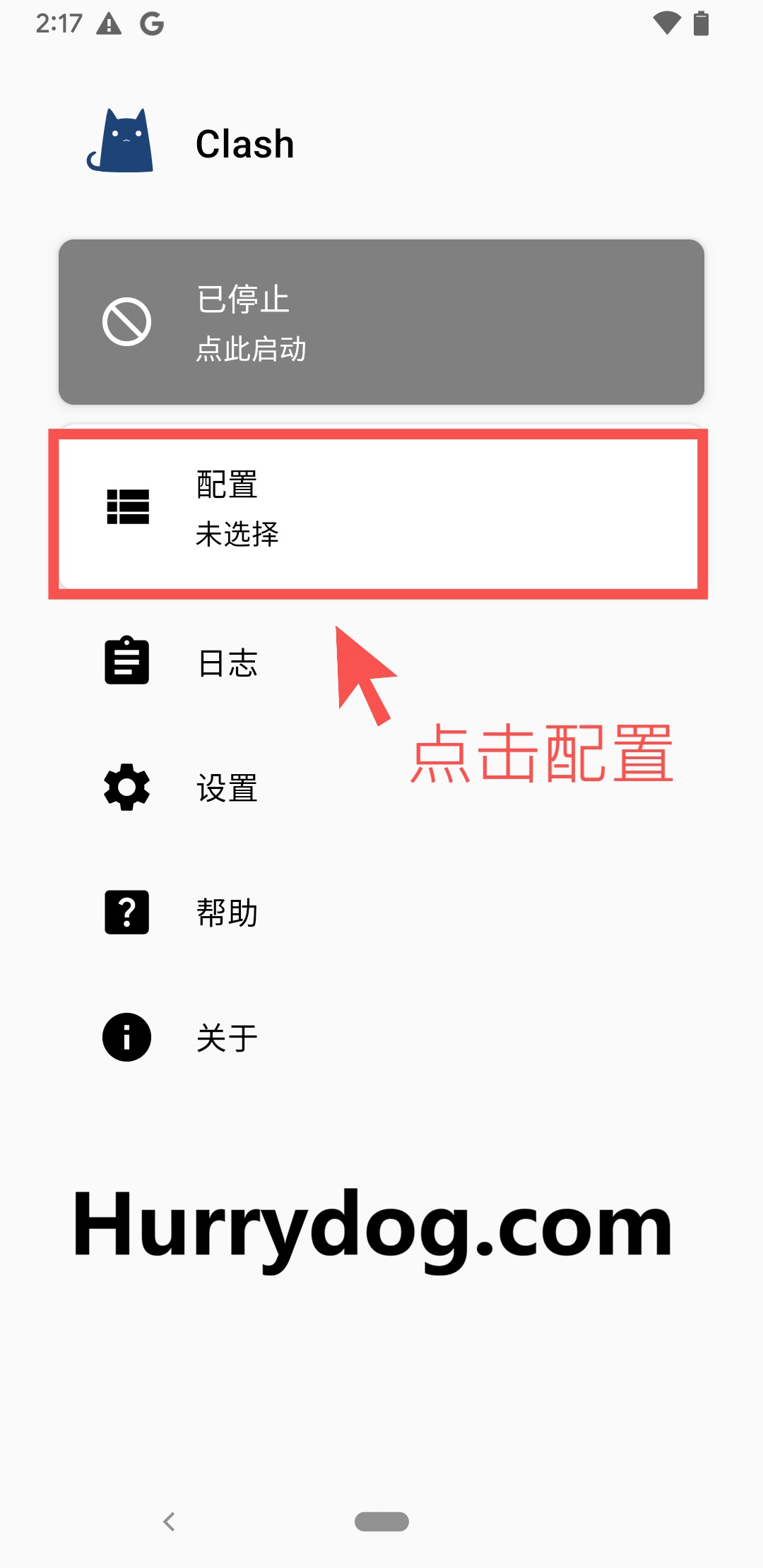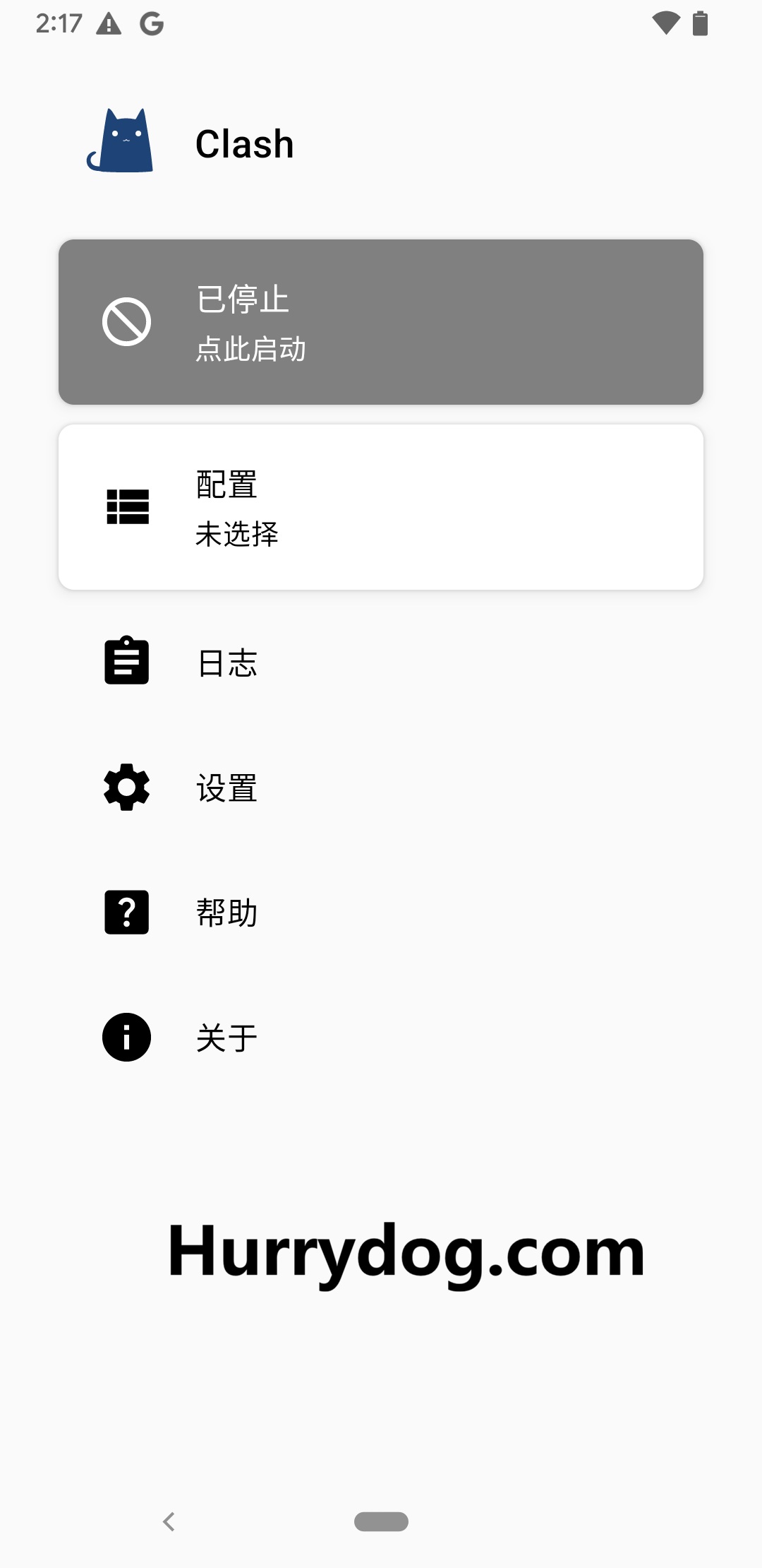 Clash for Android 安装完成后,默认打开的页面如下: